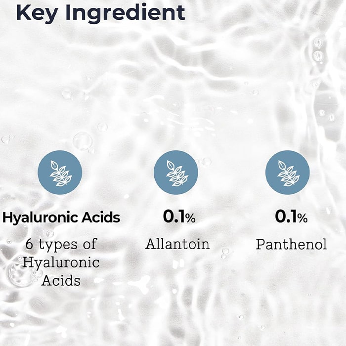 • حاوی 6 نوع هیالورونیک اسید، ویتامین B5 (پانتنول) و آلانتوئین